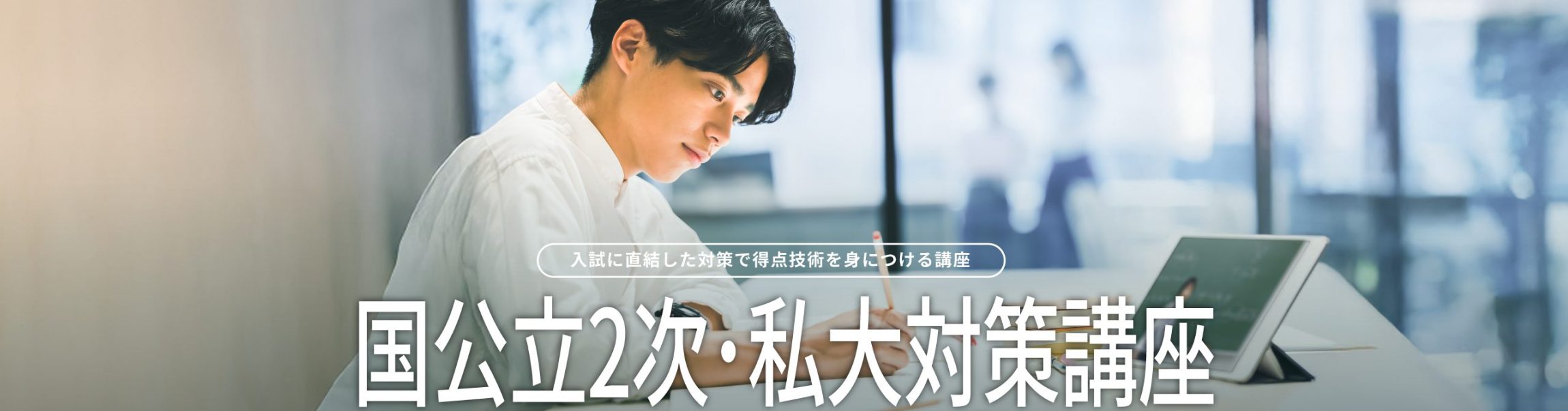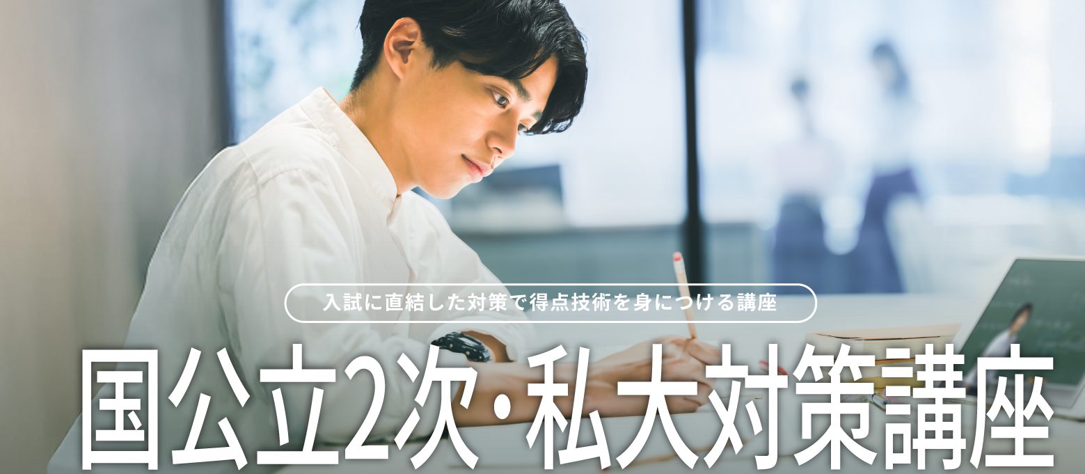 | 国公立2次対策/数ⅠA・ⅡB・C | 10回 | 国公立大の入試問題を解くために必要な考え方のポイントから解答を導く実践力まで養います。 | |